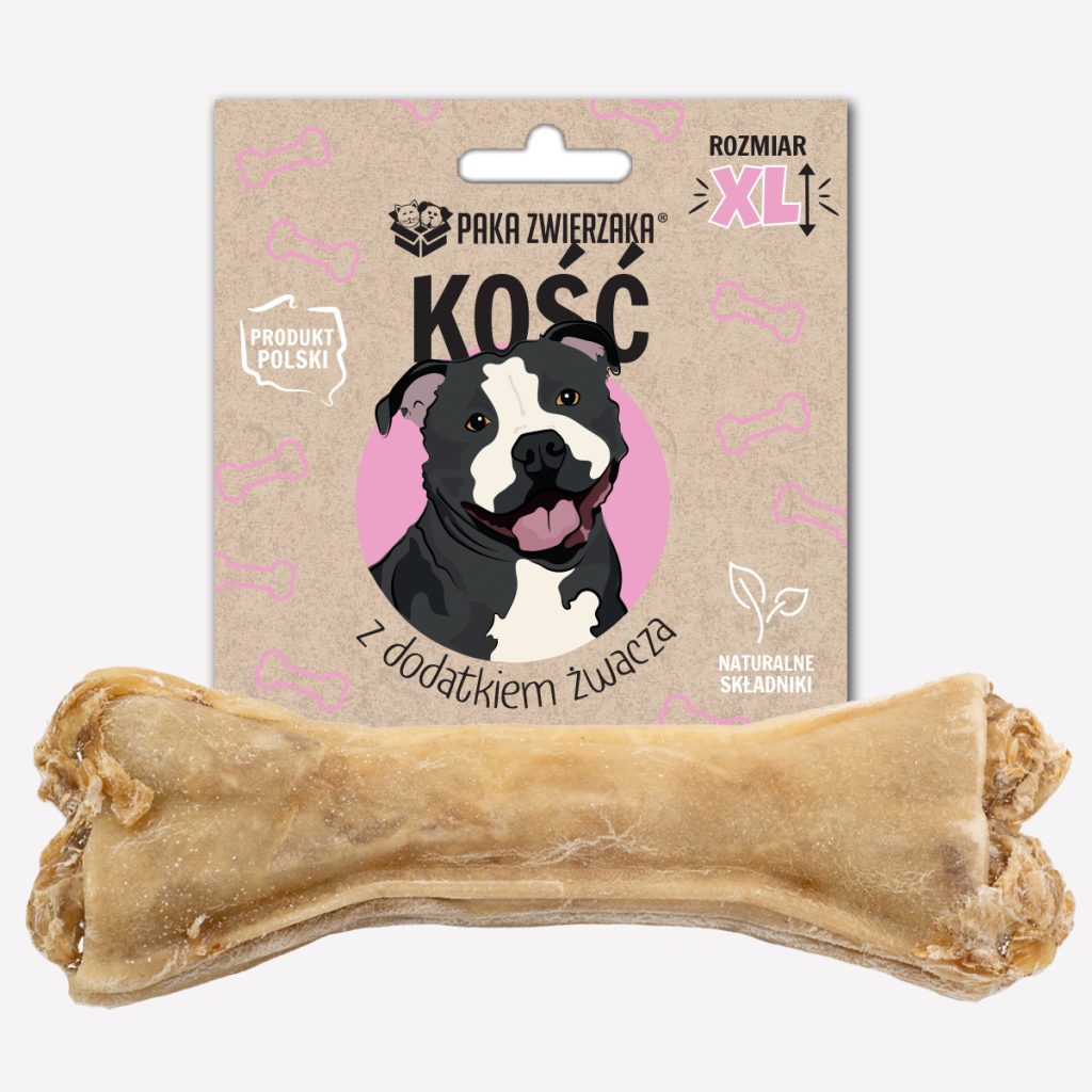 Kość wykonana ręcznie, pozbawiona klejów i barwników. Stworzona tylko z naturalnych składników najwyższej jakości. Bezpieczna dla dziąseł psa, nie zawiera ostrych elementów.