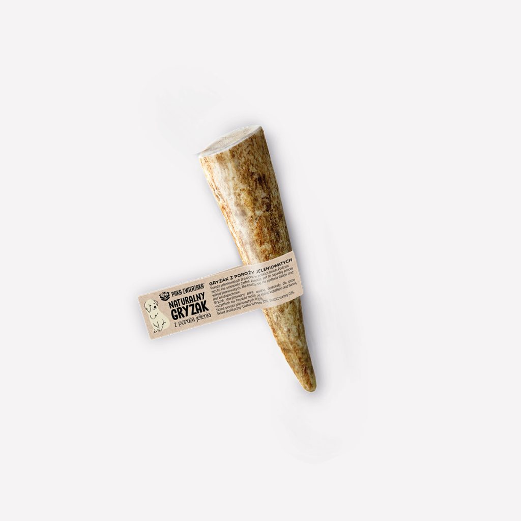 Poroże jeleniowatych zrzucone i pozostawione w polskich lasach. Podczas zrzutu nie ucierpiało żadne zwierzę, jest to naturalny proces wśród jeleniowatych: jelenia, daniela i łosia. Przysmak produkowany w Polsce pod stałym nadzorem Powiatowego Inspektora Weterynarii.