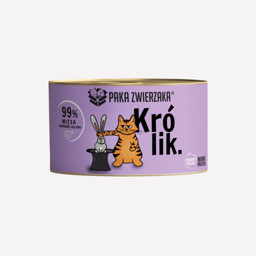 Naturalna karma mokra jest kompletnym i zbilansowanym posiłkiem dla kotów w każdym wieku. Zawiera 99% mięsa, cennych podrobów oraz rosołu z królika. Przygotowana z najwyższej jakości świeżych składników. Bogata w składniki odżywcze i wysoko przyswajalne źródła białka zwierzęcego.