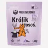 Królik z łososiem (w tym suszone mięso królika 40%, suszony łosoś 30%, olej z łososia 10%), bataty 14%, ziemniaki, zioła 3% (lucerna, kozłek lekarski, babka płesznik, rozmaryn, kurkuma), jabłko, marchewka, suszone jaja, suszone drożdże piwne, żurawina, inulina, tauryna, granat, FOS, zielona herbata, glukozamina, chondroityna.