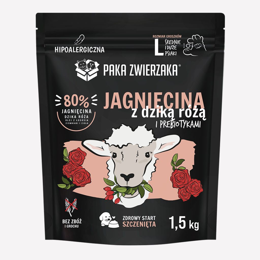 Karma sucha dla psa PAKA ZWIERZAKA jagnięcina i dzika róża PUPPY L 1,5 kg