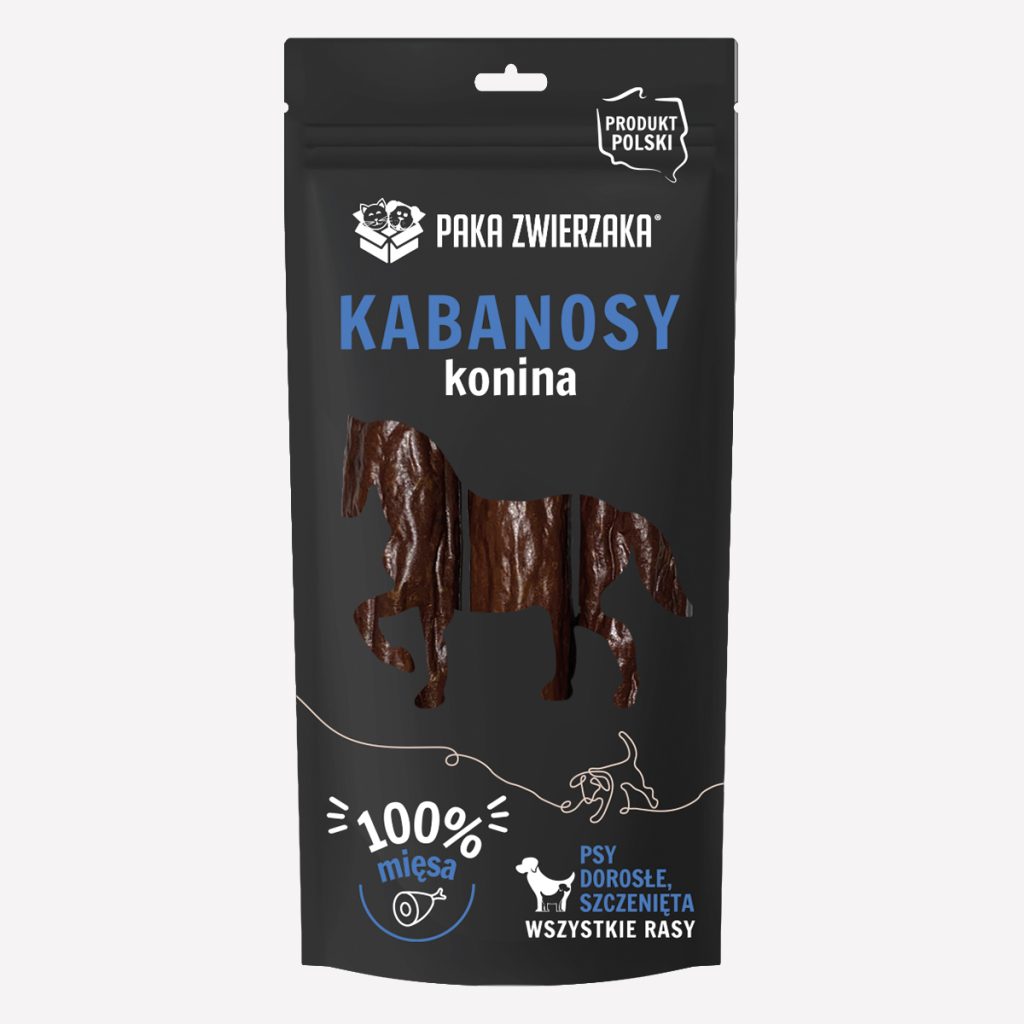 Kruche, smakowite kabanosy wykonane z mięsa koniny. To doskonałe, 100% naturalne uzupełnienie diety psa każdej wielkości. Dodatek kolagenu wspiera prawidłowe funkcjonowanie układu krwionośnego oraz trawiennego. Suszenie ciepłym powietrzem nadaje im niezwykłej chrupkości i pozwala na zachowanie wszystkich cennych witamin i minerałów. Podczas gryzienia masuje dziąsła, czyści kamień nazębny i zaspokaja potrzebę żucia. Produkt nie zawiera konserwantów, wzmacniaczy smaku, aromatu oraz wypełniaczy.