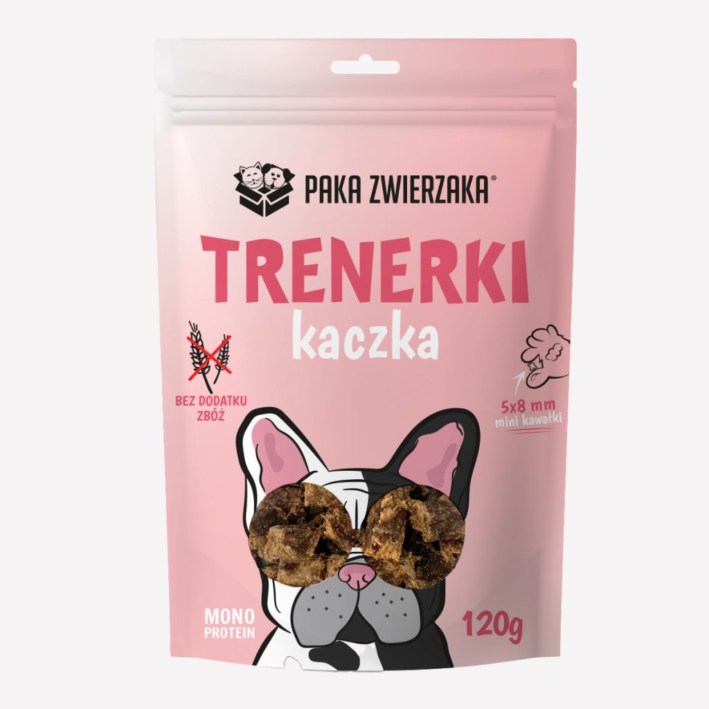 Trenerki PAKA ZWIERZAKA to przepyszny, bezzbożowy przysmak przyrządzony z jednego rodzaju mięsa. Smakołyki są delikatnie suszone ciepłym powietrzem, dzięki czemu zachowują cenne wartości odżywcze. Nie zawierają konserwantów, wzmacniaczy smaku, aromatu oraz wypełniaczy. Stanowią nie tylko smaczny, ale również zdrowy i wartościowy dodatek do codziennej diety psa.