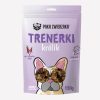 Trenerki PAKA ZWIERZAKA to przepyszny, bezzbożowy przysmak przyrządzony z jednego rodzaju mięsa. Smakołyki są delikatnie suszone ciepłym powietrzem, dzięki czemu zachowują cenne wartości odżywcze. Nie zawierają konserwantów, wzmacniaczy smaku, aromatu oraz wypełniaczy. Stanowią nie tylko smaczny, ale również zdrowy i wartościowy dodatek do codziennej diety psa.