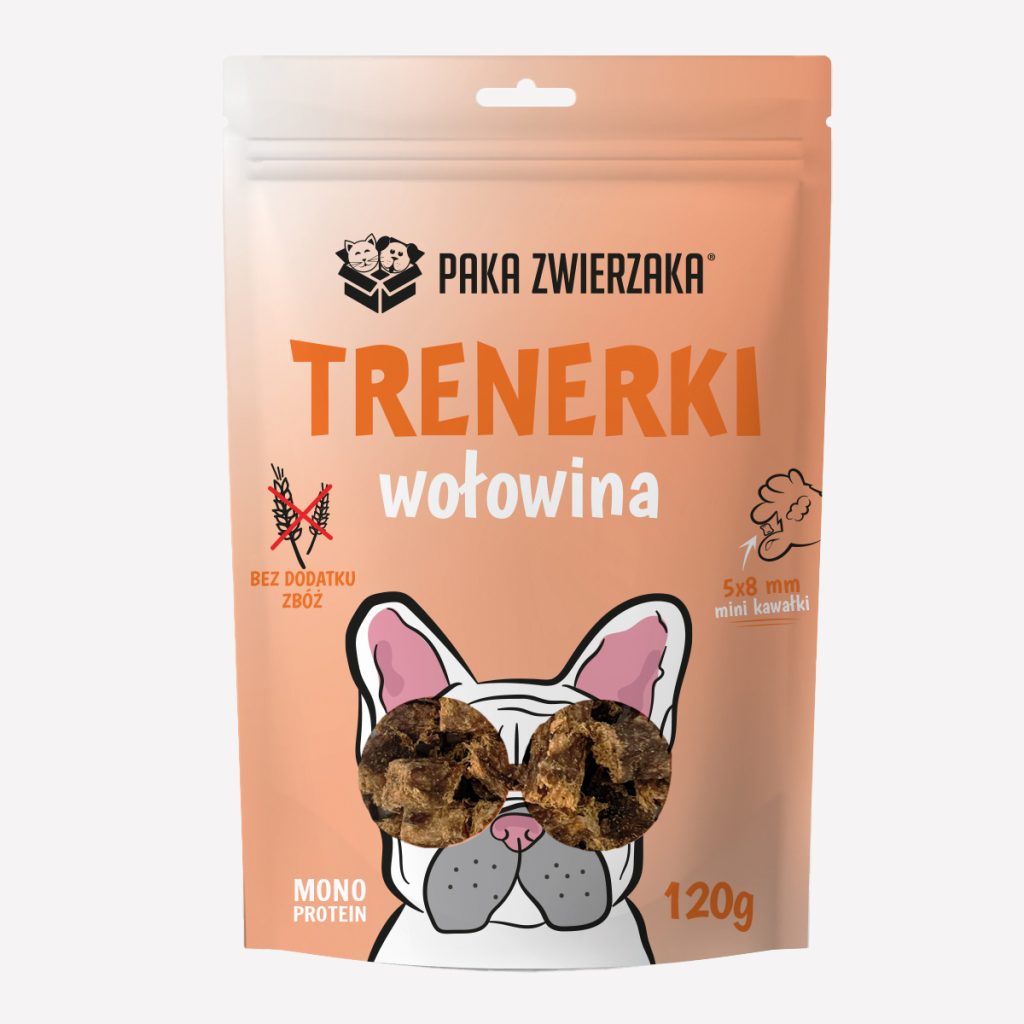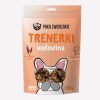 Trenerki PAKA ZWIERZAKA to przepyszny, bezzbożowy przysmak przyrządzony z jednego rodzaju mięsa. Smakołyki są delikatnie suszone ciepłym powietrzem, dzięki czemu zachowują cenne wartości odżywcze. Nie zawierają konserwantów, wzmacniaczy smaku, aromatu oraz wypełniaczy. Stanowią nie tylko smaczny, ale również zdrowy i wartościowy dodatek do codziennej diety psa.
