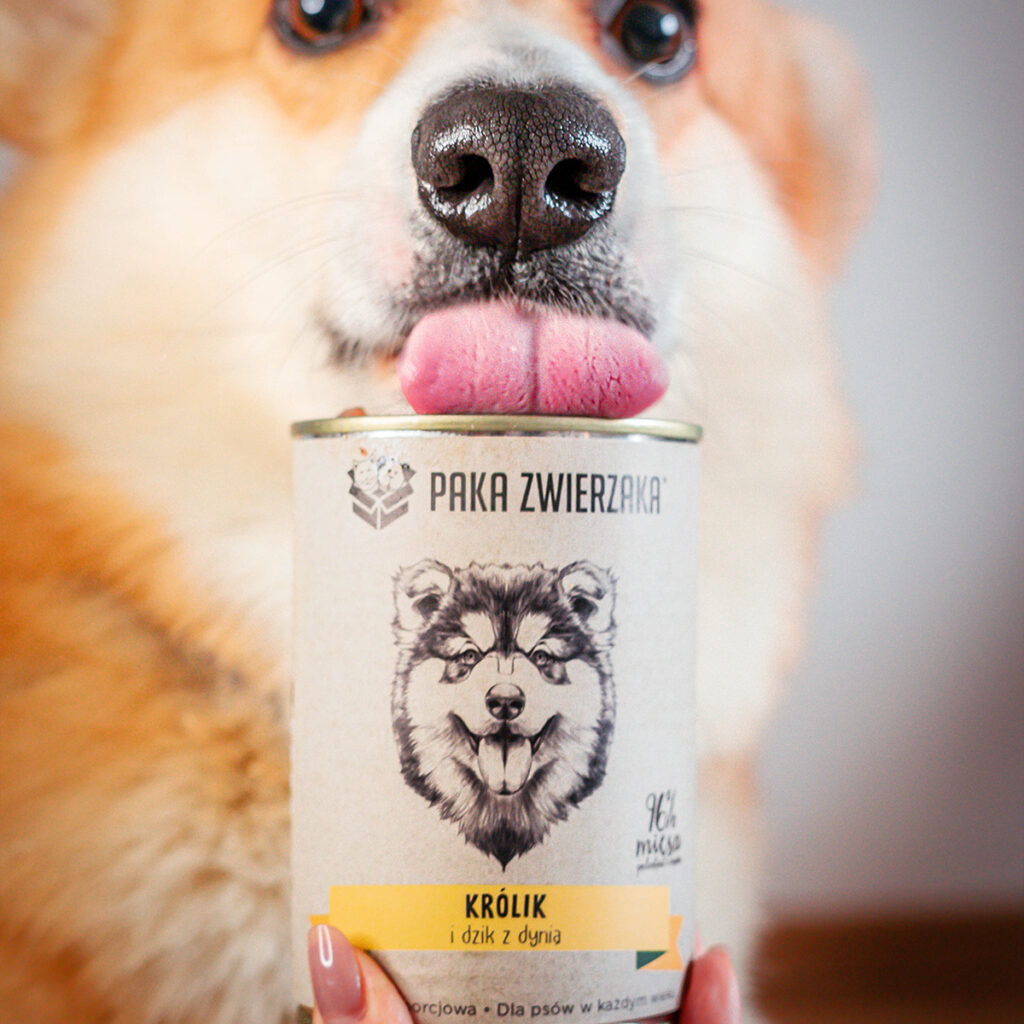 ZESTAW Karma mokra dla psa PAKA ZWIERZAKA królik i dzik z dynią 6×400 g