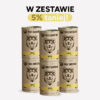 Zestaw sześciu puszek po 400 g ułatwia planowanie codziennego karmienia i jest około 5% tańszy niż zakup pojedynczych puszek.